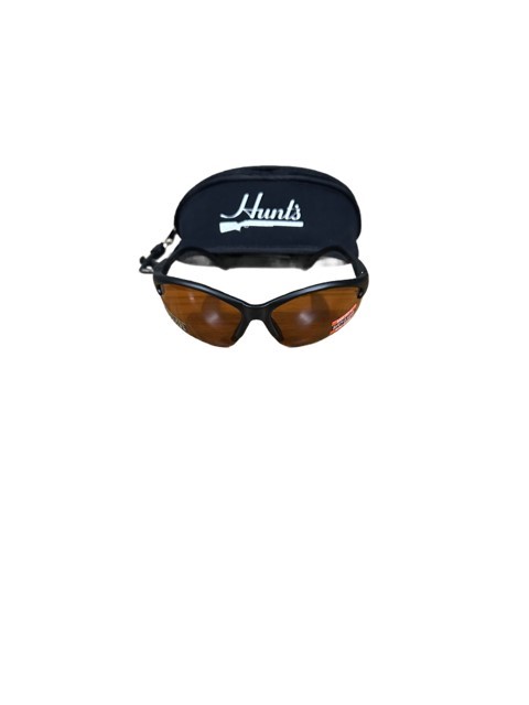 Hogies amber lense shooting glasses with neoprene zip up carry case.